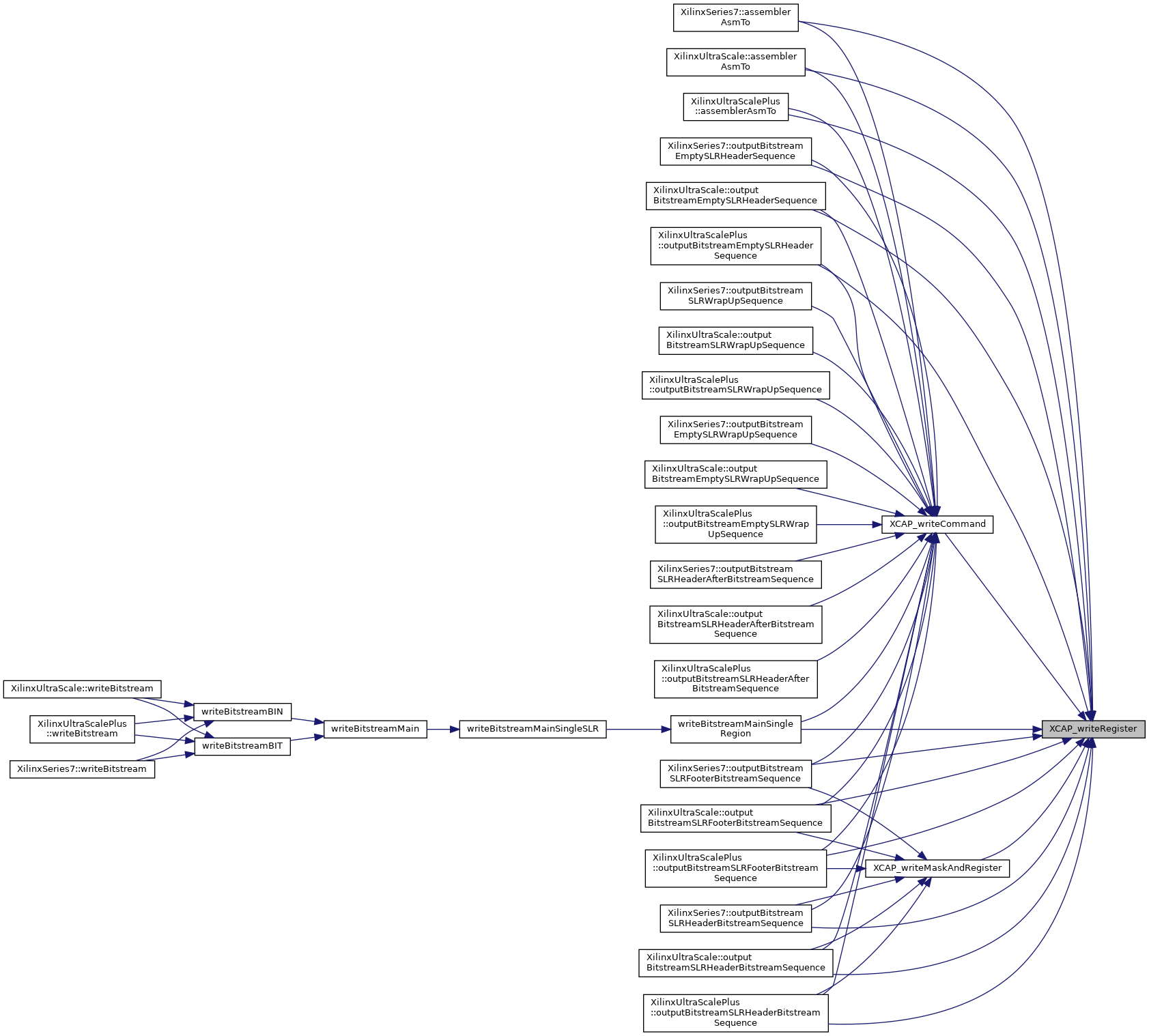 Referenced by XilinxSeries7::assemblerAsmTo(), XilinxUltraScale::assemblerAsmTo(), XilinxUltraScalePlus::assemblerAsmTo(), XilinxSeries7::outputBitstreamEmptySLRHeaderSequence(), XilinxUltraScale::outputBitstreamEmptySLRHeaderSequence(), XilinxUltraScalePlus::outputBitstreamEmptySLRHeaderSequence(), XilinxSeries7::outputBitstreamSLRFooterBitstreamSequence(), XilinxUltraScale::outputBitstreamSLRFooterBitstreamSequence(), XilinxUltraScalePlus::outputBitstreamSLRFooterBitstreamSequence(), XilinxSeries7::outputBitstreamSLRHeaderBitstreamSequence(), XilinxUltraScale::outputBitstreamSLRHeaderBitstreamSequence(), XilinxUltraScalePlus::outputBitstreamSLRHeaderBitstreamSequence(), writeBitstreamMainSingleRegion(), XCAP_writeCommand(), and XCAP_writeMaskAndRegister().