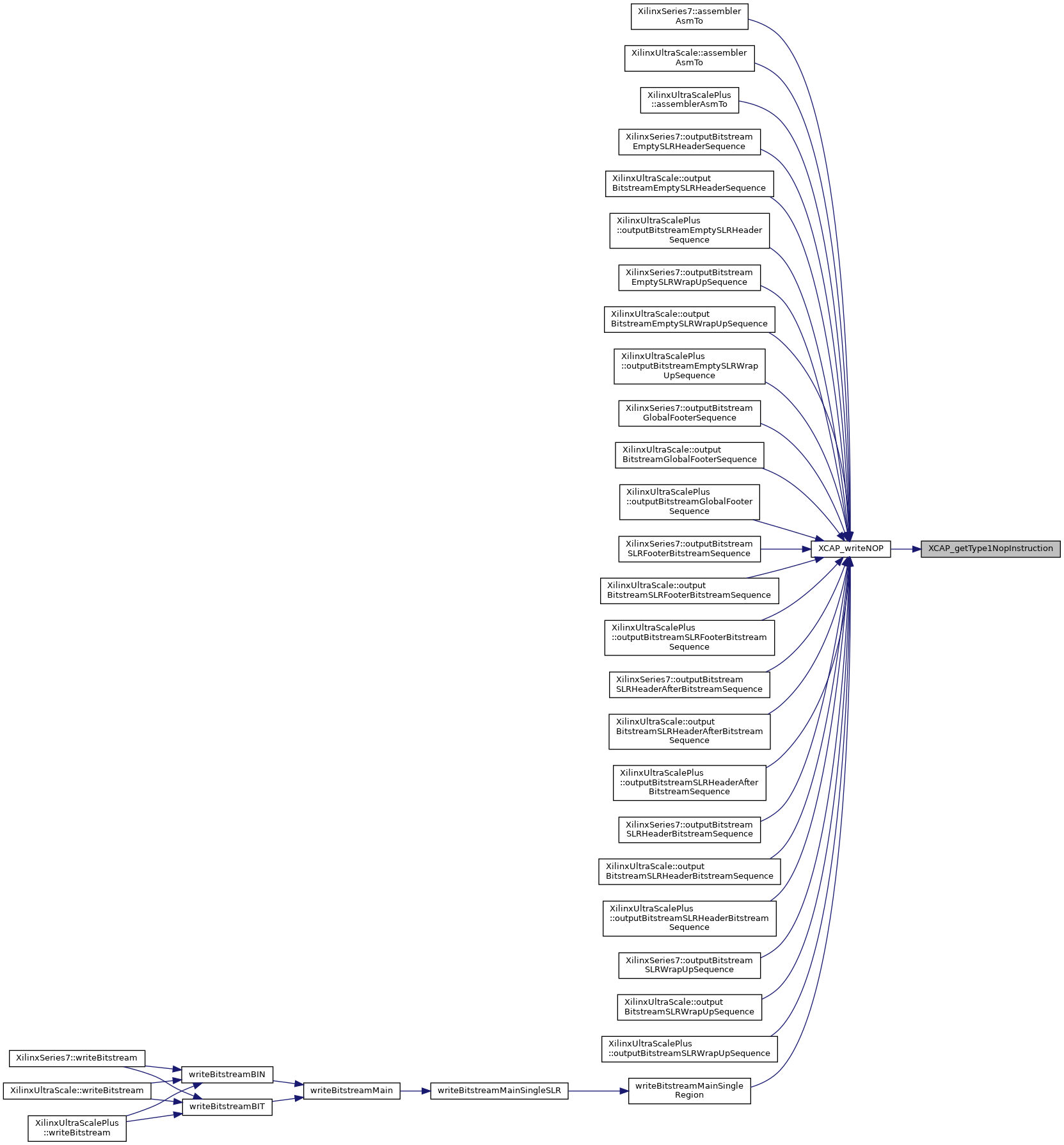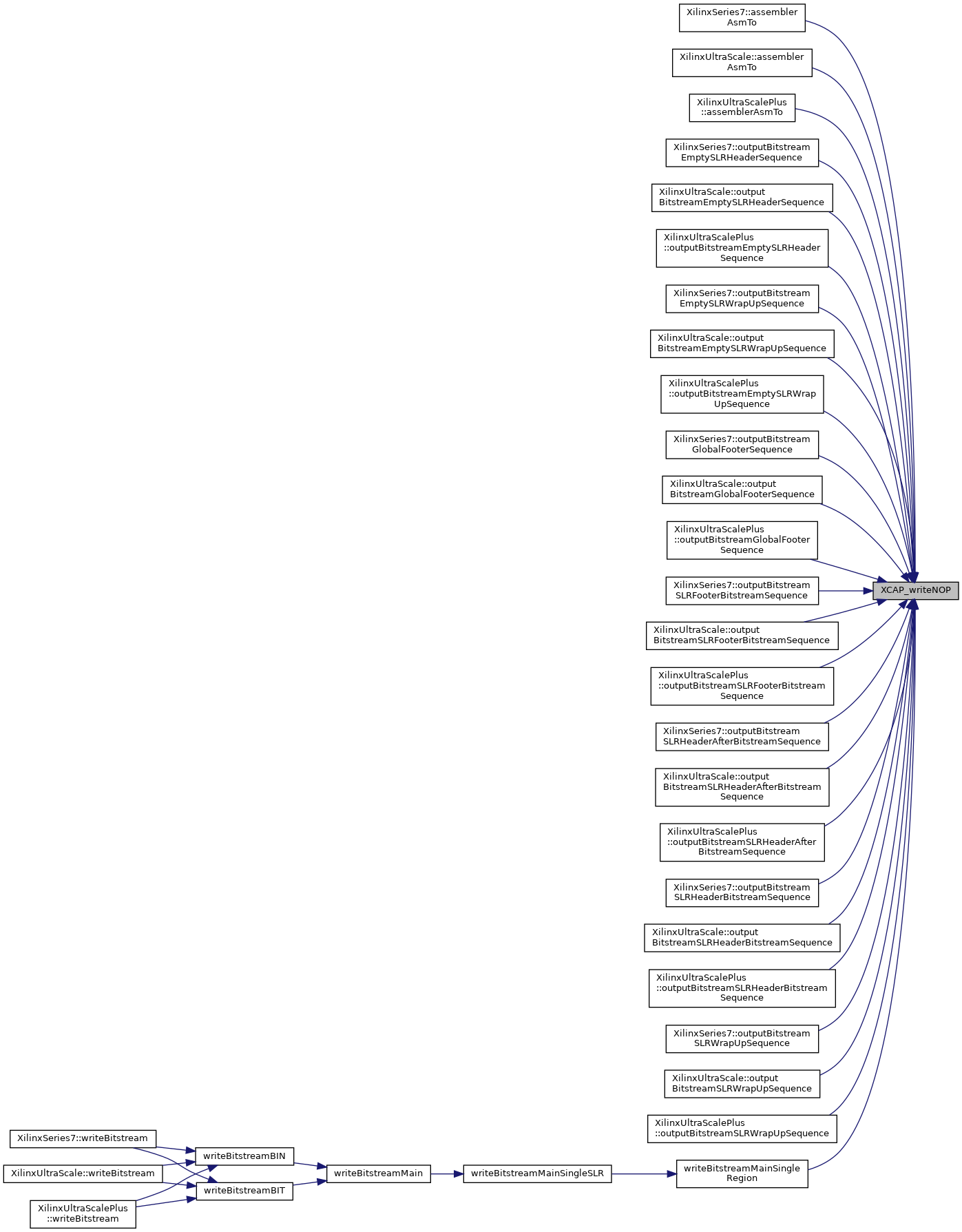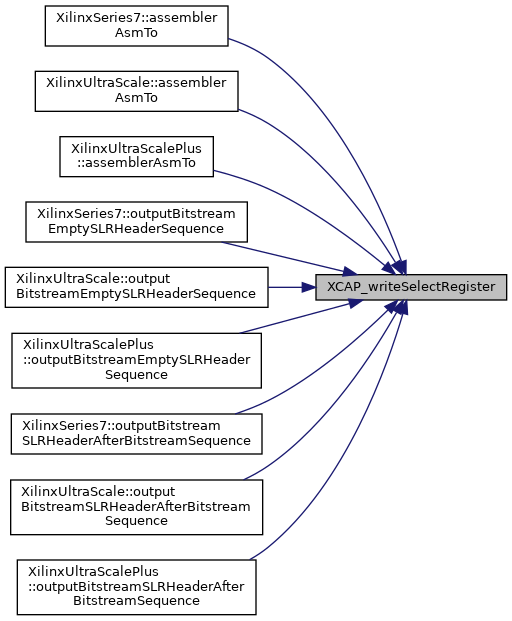 Referenced by XilinxSeries7::assemblerAsmTo(), XilinxUltraScale::assemblerAsmTo(), XilinxUltraScalePlus::assemblerAsmTo(), XilinxSeries7::outputBitstreamEmptySLRHeaderSequence(), XilinxUltraScale::outputBitstreamEmptySLRHeaderSequence(), XilinxUltraScalePlus::outputBitstreamEmptySLRHeaderSequence(), XilinxSeries7::outputBitstreamSLRHeaderAfterBitstreamSequence(), XilinxUltraScale::outputBitstreamSLRHeaderAfterBitstreamSequence(), XilinxUltraScalePlus::outputBitstreamSLRHeaderAfterBitstreamSequence(), and XCAP_writeFDRI().